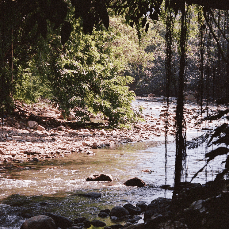 swirling green in the morning mist
