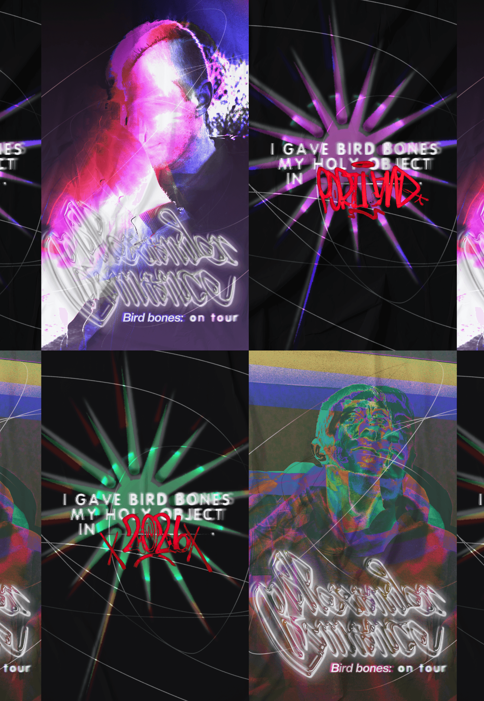Perhaps poetically ironic, this album was released to the applause of very few: not because it isn't great music, but because it was intended to be gate kept. Soundcloud hosts thousands of talented artists releasing gems of albums that are heard by no one, and Alexander Romance is no exception. When I first heard its distorted synths and 8bit loops, I knew I wanted to create a visual, conceptual campaign for the album. The artist, currently under the name Bird bones, was kind enough to let me adopt his sounds for my electrized machinations.